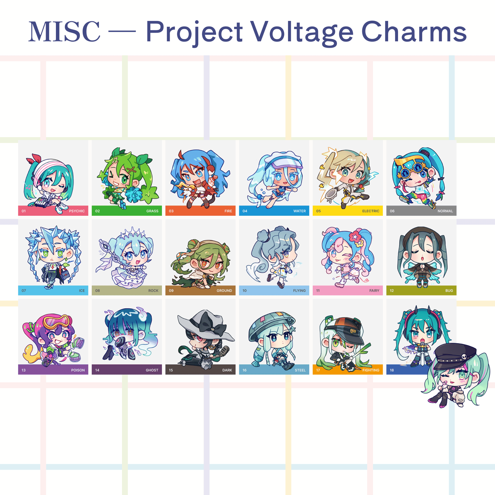 All 18 types + Team Rocket Mikus!